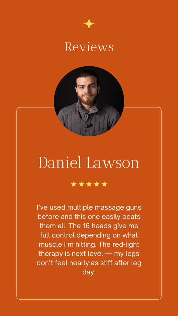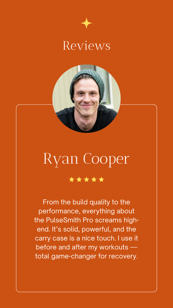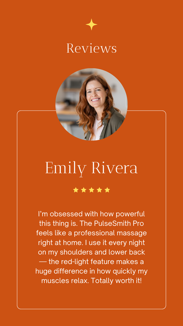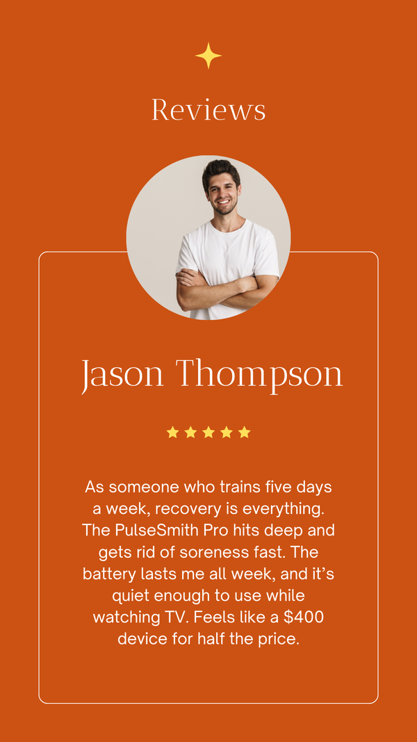I’ve used a lot of massage guns before, but the PulseSmith Pro honestly feels different. The power is insane — I can target deep knots after leg day and feel instant relief. The red-light feature surprised me — it actually helps my muscles recover faster. It’s quiet, comfortable to hold, and the battery lasts forever. Easily one of the best recovery tools I’ve added to my gym bag.
